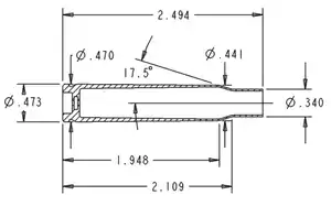 Пример гильзы без выступающей закраины (бесфланцевая гильза). Все размеры в дюймах.