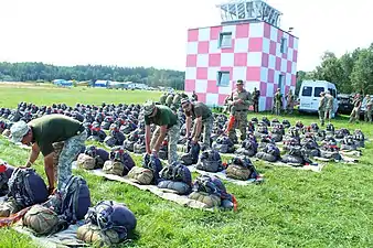 Военнослужащие 80-й отдельной десантно-штурмовой бригады готовятся к тренировочным прыжкам с парашютом, август 2018 г.