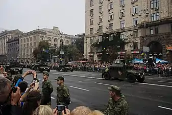 Колонна HMMWV M1114 UAH 80-й аэромобильной бригады проходит по Крещатику на параде в честь Дня независимости Украины, Киев, 24 августа 2016 г.