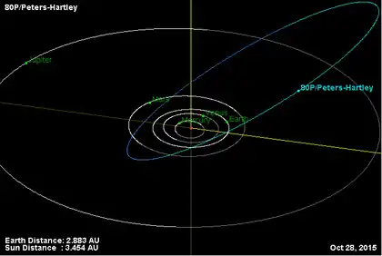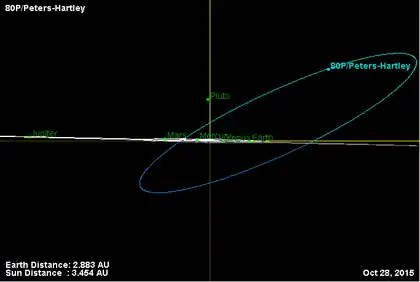 - Орбита кометы Петерса — Хартли и её положение в Солнечной системе