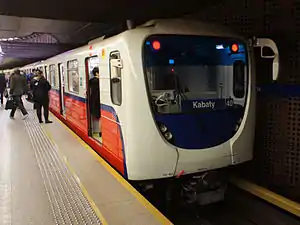 Состав из вагонов 81-572.2/573.2 на станции варшавского метро «Площадь Вильсона»