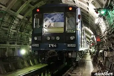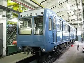 ![]() Вагон модели 81-540 со снятыми подножками в электродепо Невское | |