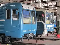 ![]() Вагон 81-720.1 № 10037 в депо Северное незадолго до порезки | |