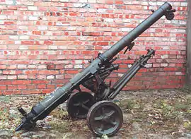 Представляет собой безоткатное орудие, в котором использовался принцип динамореактивного орудия. Б-10 был принят на вооружение в 1954 году. Серийное производство было организованно на Тульском машиностроительном заводе, на котором Б-10 выпускалось до 1964 года. Оснащалось треногой-лафетом, который имел съёмный колёсный ход, с помощью которого орудие перемещалось силами расчёта на короткие расстояния.