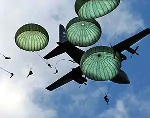 Выброска парашютного десанта из подразделений 82-й дивизии СВ США во время показательных выступлений на территории в/ч ВВС США «Эндрюс» (2006)