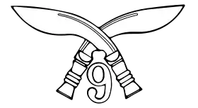 Эмблема полка представляет собой два скрещённых ножа-кукри, направленных лезвиями в противоположные стороны. Под местом перекрещения, между рукоятками ножей, размещена арабская цифра 9, а над местом перекрещения — эмблема Индии в виде «Львиной капители» Ашоки. В период существования полка до 1947 года над местом перекрещения располагалась корона монарха Великобритании.