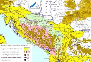 - Разделение римской провинции Иллирия на Далмацию (Верхняя Иллирия) и Паннонию (Нижняя Иллирия).