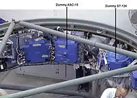 Спутник Пегас внутри макета корабля Аполлон.