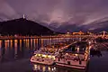 A-Rosa Donna и Rossini вместе вечером у причала в Будапеште