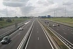 , проходящая через города Алмере, Лелистад и Эммелорда. После развязки реверсивные полосы заканчиваются, а шоссе сужается до 2×3 полос.