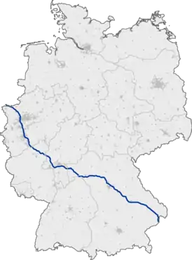 Соединяет между собой Рейнско-Рурский регион и южную часть Германии, проходя около городов Оберхаузен, Дуйсбург, Леверкузен, Кёльн, Висбаден, Франкфурт, Нюрнберг и Регенсбург.