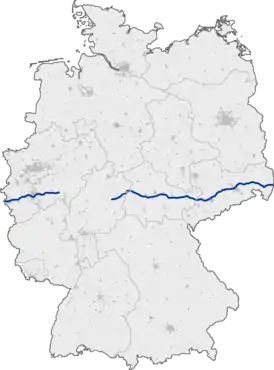 Проходит в центральной части Германии в направлении восток-запад, соединяя Нидерланды и Польшу.