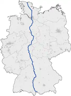 | Через | Шлезвиг-Гольштейн, Гамбург, Нижняя Саксония, Гессен, Бавария, Баден-Вюртемберг |