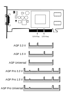 AGP (от англ. Accelerated Graphics Port, ускоренный графический порт) — специализированная 32-разрядная системная шина для видеокарты, разработанная в 1996 году компанией Intel. Появилась одновременно с чипсетами для процессора Intel Pentium MMX; у сторонних производителей появилась в чипсетах MVP3, MVP5 c Super Socket 7. Основной задачей разработчиков было увеличение производительности и уменьшение стоимости видеокарты за счёт уменьшения количества встроенной видеопамяти. По замыслу Intel, большие объёмы видеопамяти для AGP-карт были бы не нужны, поскольку технология предусматривала высокоскоростной доступ к общей памяти. Её отличия от предшественницы, шины PCI: