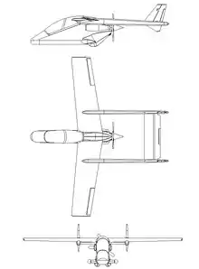 Самолёт представляет собой цельнометаллический свободнонесущий высокоплан с одним турбовинтовым двигателем Pratt&Whitney Canada PT6А-66 мощностью 950 л.с. Особенность этого высокоплана — обратная стреловидность крыла, двухбалочная схема и толкающий винт, который располагается в задней части фюзеляжа. Продолжительность полёта достигает 7,5 — 10 часов.