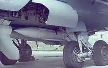 ![]() AIM-54A Phoenix под крылом перехватчика F-14A Tomcat на морской авиабазе Patuxent River, (штат Мэриленд, США), 13 мая 1984 года. | |