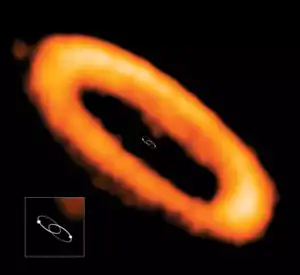 ![]() Система AK Скорпиона по данным ALMA. Орбита двойной нарисована для масштаба. | |||||||||||||||||||
