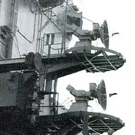 ![]() Антенны системы AN/SPN-42 на авианосце CV-67 «Джон Ф. Кеннеди» | |
