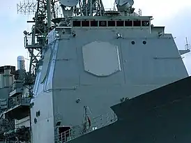 ![]() Фазированная решётка радара SPY-1 на надстройке крейсера «Лейк Эри» типа «Тикондерога» | |