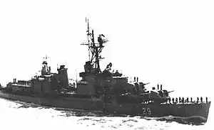 Корабль вступил в строй в 1944 году. Участвовал во Второй мировой и Корейской войнах. В 1960 выведен в резерв, в 1974 вместе с однотипным «Мэнсфилдом» был продан на запчасти Аргентине, купившей до этого у США «Сегуи» и «Иполито Бушар». Однако, техническое состояние корабля позволило провести ремонт и 17 мая 1977 он вошёл в состав аргентинского флота как ARA Piedra Buena (D-29) — четвёртое судно носившее это имя. На корабль был установлен противокорабельный ракетный комплекс «Экзосет».