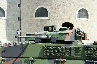 - Новая двухместная бронебашня T40M компании Nexter Systems, вооружённая 40-мм пушкой CT40 с телескопическими боеприпасами 40×255 мм[12]. Дульная энергия CT40 500 кДж[13].