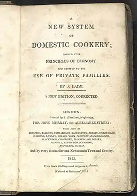 Книга, впервые вышедшая в 1806 году, на тот момент представляла собой небольшую подборку рецептов, напечатанную Джоном Мюрреем (1778—1843), другом семейства Ранделлов и известным лондонским издателем, работавшим, в частности с лордом Байроном и Вашингтоном Ирвингом.