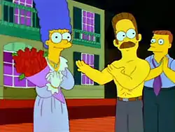 Мардж (в роли Бланш), Фландерс (в роли Стэнли) и Лайнел Хатц (в роли Митча) в конце спектакля | |