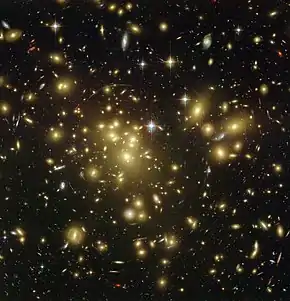 - Galaxy cluster Abell 1689: Astronomers Find One of the Youngest and Brightest Galaxies in the Early Universe (HubbleSite)