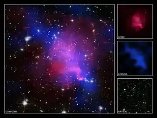 - ‘Cosmic train wreck’ stumps dark-matter physicists (недоступная ссылка). Physics World. Дата обращения: 5 апреля 2018. Архивировано 21 января 2012 года.