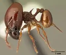 Мелкие муравьи (менее 5 мм) с диморфичной кастой рабочих, кроме мелких рабочих есть вдвое более крупные солдаты, которые своими мощными жвалами перемалывают семена, как у муравьёв-жнецов рода Messor. Клипеус нависает над жвалами, передний его край с зубчиками. Голова крупных солдат имеет относительно огромные размеры, покрывает пронотум и равна почти половине длины тела. Шипы на заднегрудке длинные, у рабочих есть ещё два шипа на перднеспинке, направленные вбок. Усики 12-члениковые, булава состоит из 3 сегментов[2][3].