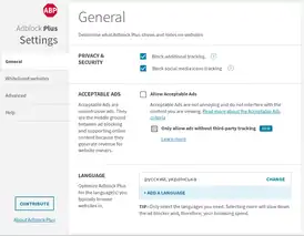 Adblock Plus — расширение для браузеров и другого ПО на основе Gecko (Mozilla Firefox, включая «мобильный», Mozilla Thunderbird, Mozilla Suite, SeaMonkey, Songbird, Mozilla Prism и K-Meleon[1][2]), Blink (Google Chrome, Chromium, Opera и др.) и Trident (Internet Explorer), позволяющее блокировать загрузку и показ рекламы как на страницах сайтов, так и в поисковой выдаче[3][4].