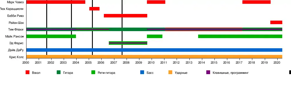- Марк Чавез — вокал (2000—2004, 2009—2011, 2017—2019)