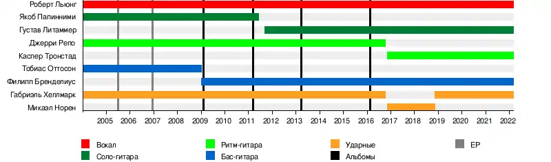 - Габриэль Хеллмарк — ударные (2004—2016, 2018—настоящее время)