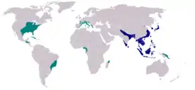 В Азии Aedes albopictus могут спутать с любым представителем его подрода, так как они все имеют чёрную и белую окраску. Наибольшее сходство он имеет с сестринскими видами Aedes scutellaris (Индия, Индонезия, Папуа — Новая Гвинея и Филиппины), Aedes pseudoalbopictus (Индия, Индонезия, Малайзия, Бирма, Непал, Тайвань, Таиланд и Вьетнам) и Aedes seatoi (Таиланд).[8][10]