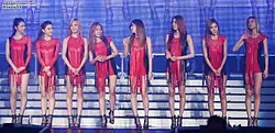 ![]() After School на пресс-конференции шоу «Библия красоты After School», январь 2014 года. Слева направо: Каын, И-Ён, Чона, Чжуён, Лиззи, Рэйна и Нана | |