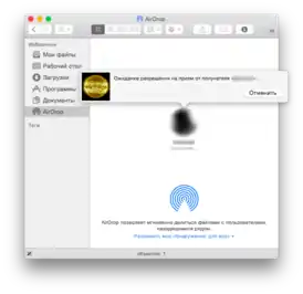![]() Отправка изображения Солнца через AirDrop на OS X | |