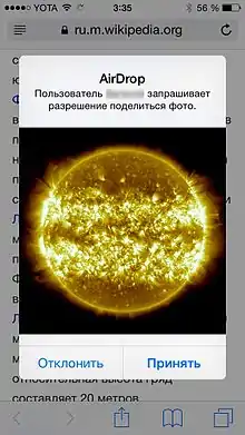 Использование AirDrop также возможно на мобильных устройствах под управлением iOS 7 или выше[3]: