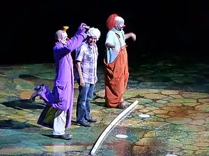 - Летающий человек — актёр исполняет номер при помощи специальных банджей и гимнастических колец