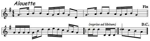 | Refrain: Alouette, gentille alouette, Alouette, je te plumerai |