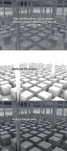 Ambient occlusion (AO) — модель затенения, используемая в трёхмерной графике и позволяющая добавить реалистичности изображению за счёт вычисления интенсивности света, доходящего до точки поверхности. В отличие от локальных методов, как например затенение по Фонгу, ambient occlusion является глобальным методом, то есть значение яркости каждой точки объекта зависит от других объектов сцены. В принципе, это достаточно отдалённо напоминает глобальное освещение.