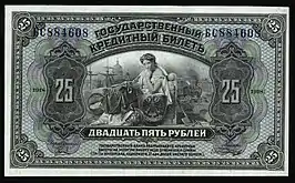 Россия (1918): ГКБ 25 рублей, находился в обращении в период Гражданской войны