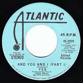 | Сингл Yes с альбома Close to the Edge |