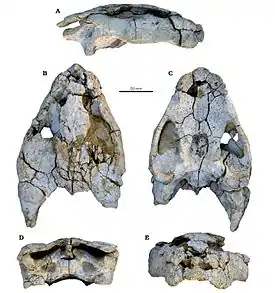 ![]() Ископаемый череп Angolachelys mbaxi | ||||||