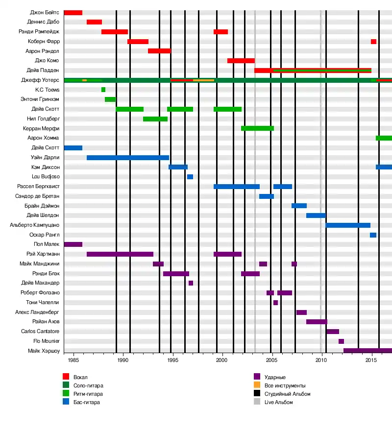 - Рич Хинкс— бас-гитара, бэк-вокал (2016-н.в.)