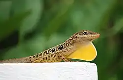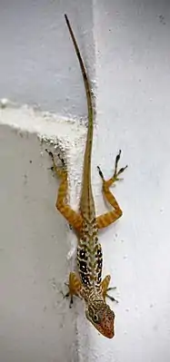 - Malhotra & Thorpe, 1992, p. 1 Detailed descriptions of the coloration and markings of each described subspecies, along with type specimen data, is provided in Lazell, 1962, pp. 467–475, with a Table of Diagnostic Characters at p. 475 cataloguing variations in throat fan (dewlap) color, white dorsal spotting, black pigment areas, ground color, venter (belly) color, tail crest, and maximum snout-to-vent length (SVL). The SVL numbers should be considered inaccurate or incomplete, however, as Lazell later noted that he had incorrectly omitted larger specimens. See Lazell, 1972, p. 68.
