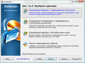 AnyReader — утилита представляет собой эффективное средство для копирования данных с нечитаемых или повреждённых носителей информации (жёсткий диск, компакт-диск, флеш-карта, дискета и т. д.), а также по копированию файлов с нестабильных сетей LAN и Wireless LAN.