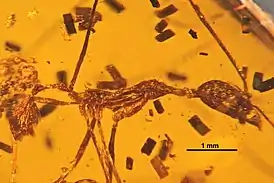 - De Andrade, M. L. The Ant Genus Aphaenogoster in Dominican and Mexican Amber (Amber Collection Stuttgart: Hymenoptera, Formicidae. IX: Pheidolini) (англ.) // Stuttgarter Beiträge zur Naturkunde. Serie B (Geologie und Paläontologie) : journal. — 1995. — Vol. 223. — P. 1—11.. Текст