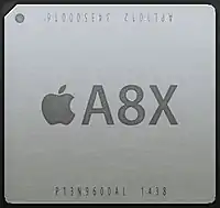 Apple A8X — 64-битный 3-х ядерный ARM-микропроцессор компании Apple из серии Apple Ax[4][5]. Реализует набор инструкций ARMv8-A, используется в планшетах iPad Air 2[6]. Процессор во многом аналогичен процессору A8 и так же относится по формулировке Apple к классу десктопных процессоров (Desktop Processor), благодаря многозадачности и широкому спектру выполняемых задач.