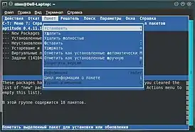 Aptitude — оболочка для Advanced Packaging Tool, части системы управления пакетами в операционной системе Debian и её производных. Имеет графический интерфейс (GTK), псевдографический и интерфейс командной строки.
