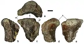 Род основывается на голотипе ZIN PH, no. 9/43, состоящем из переднего конца шейного позвонка, вероятно, пятого или шестого[2]. Также упоминаются несколько паратипов: скуловая кость, беззубый фрагмент нижней челюсти, центральные части позвонков, фрагмент лопатки, ближний конец второй фаланги левого пальца крыла, ближний конец левого бедра, головка которого, однако, разбита.